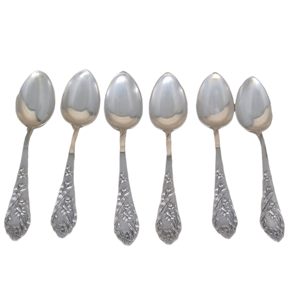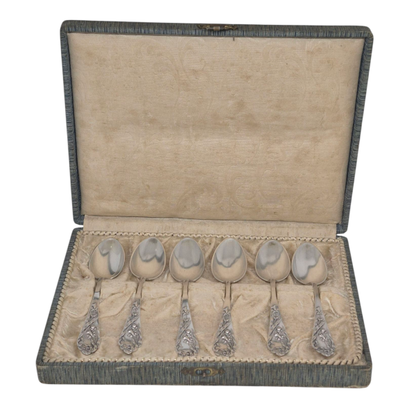 6 cucharas para café plata 800 Alemana Art Nouveau en caja