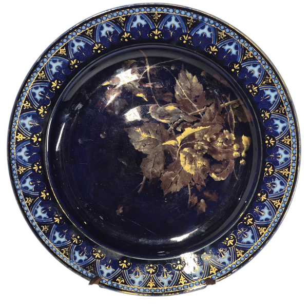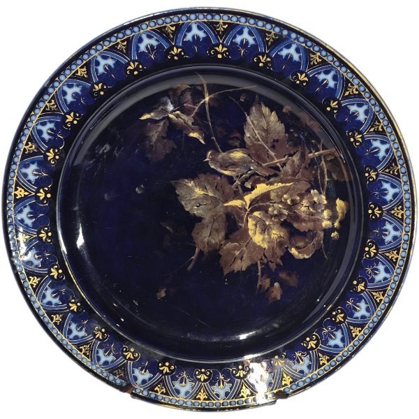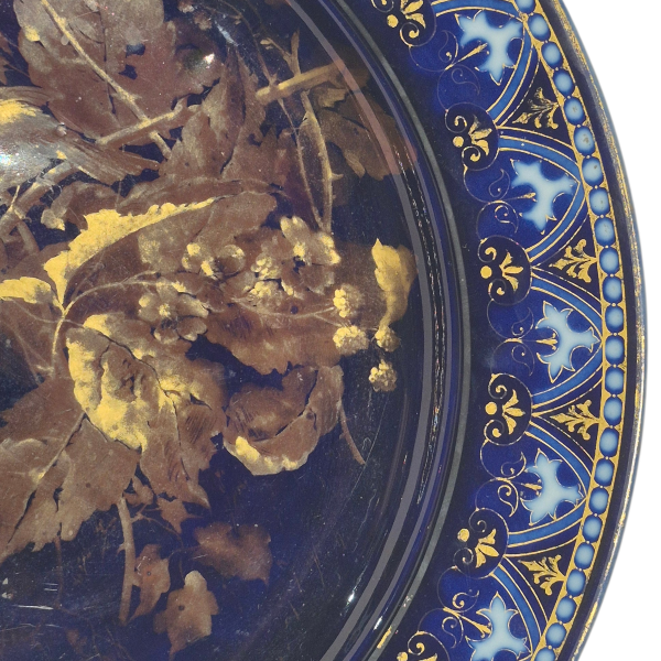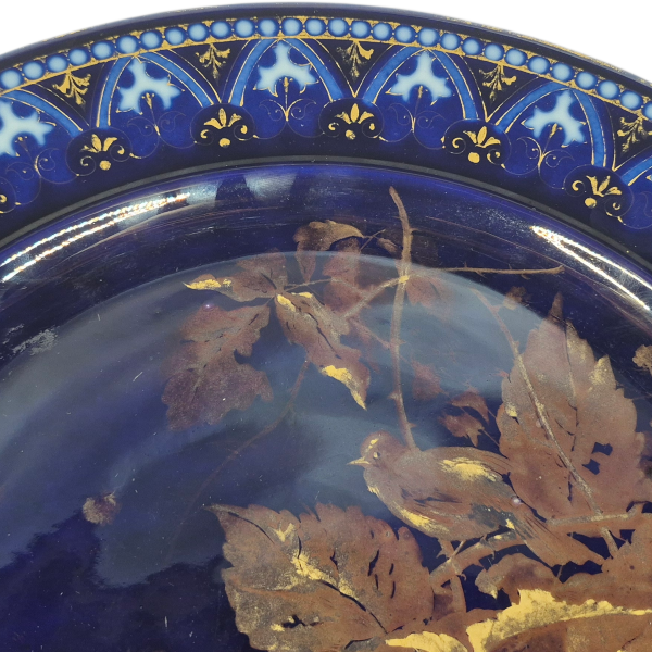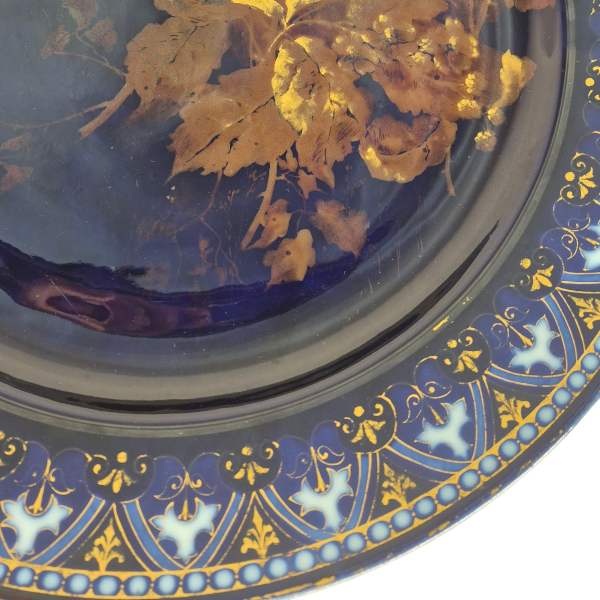 Gran plato Porcelana Sevres 45cm diámetro azul cobalto y oro
