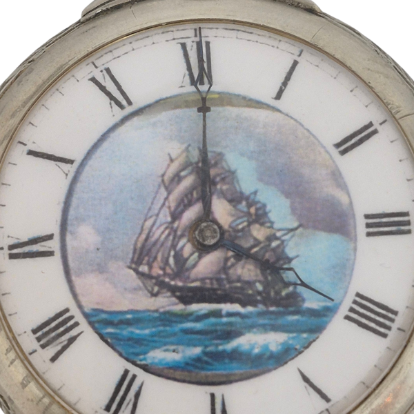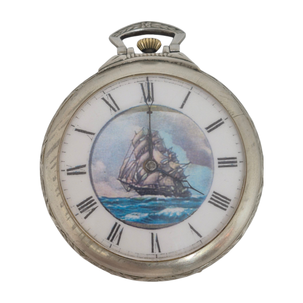 Reloj de bolsillo a cuerda, con barco en el cuadrante