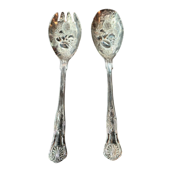Dos piezas de servir, metal plateado origen china, cuchara y tenedor.