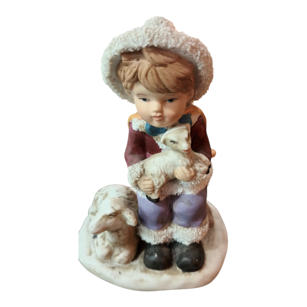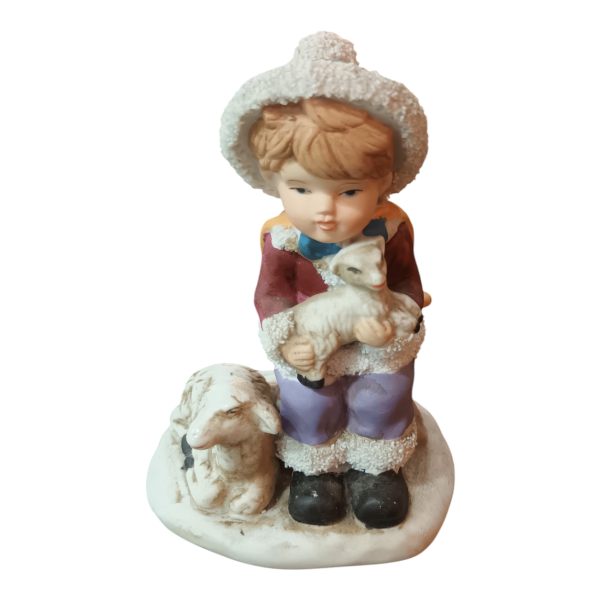 Figura de cerámica Niño Con Ovejas 14cm De Alto