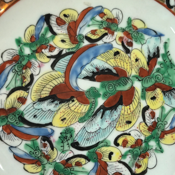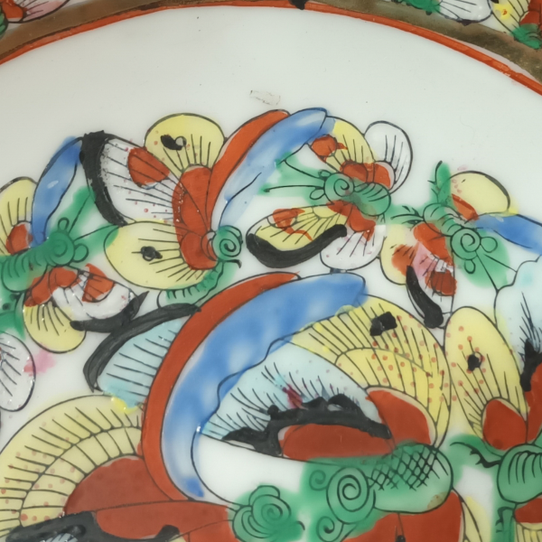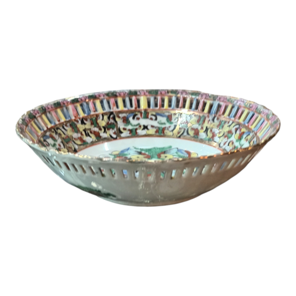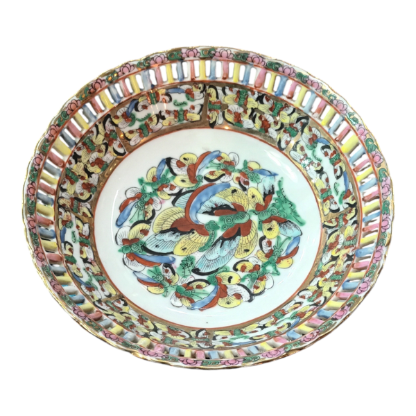 Plato de porcelana oriental calado y pintado a mano, 22cm de diámetro