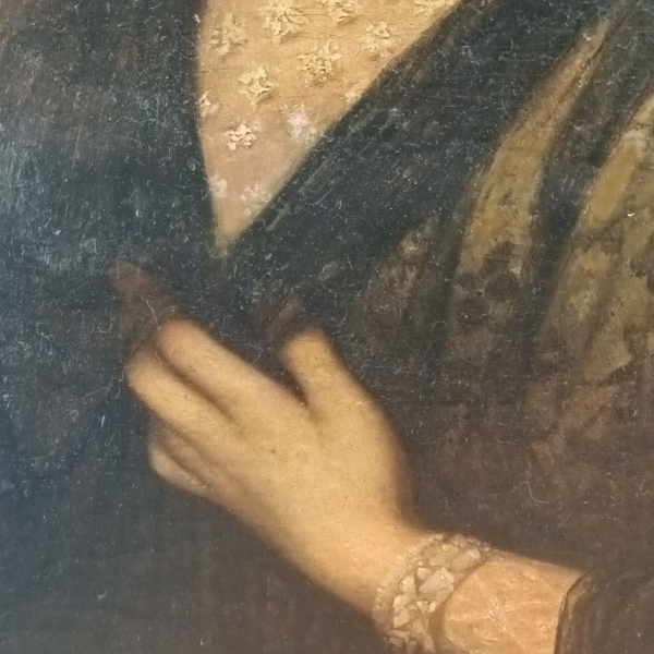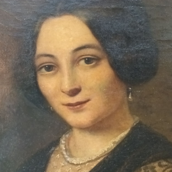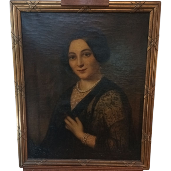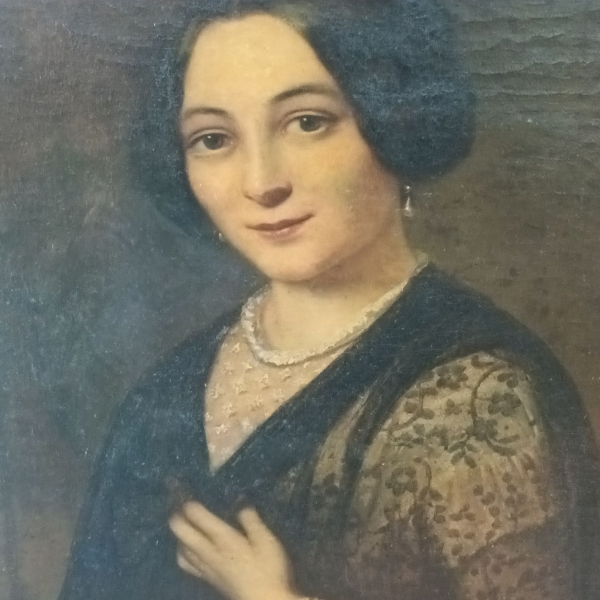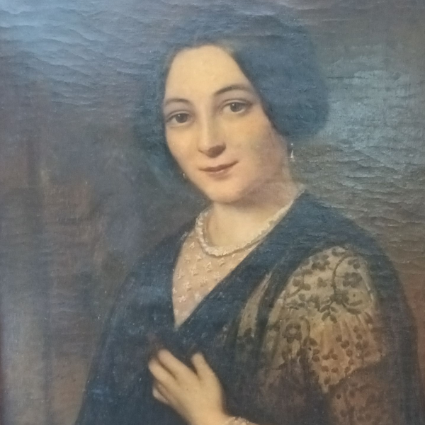 Antiguo óleo sobre tela Anónimo retrato femenino 70cm x 56cm