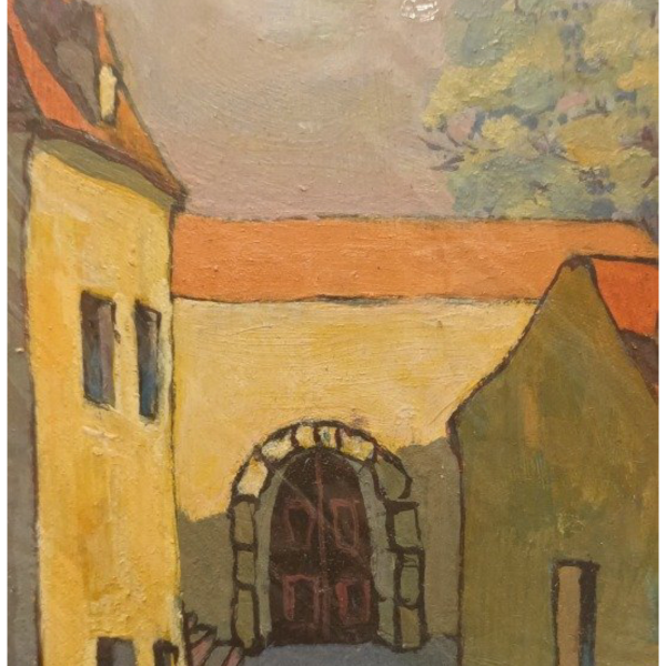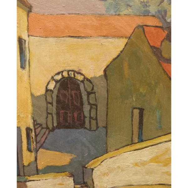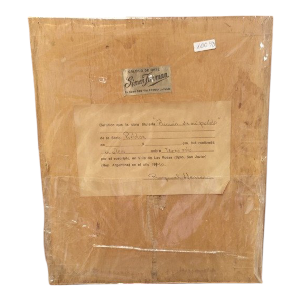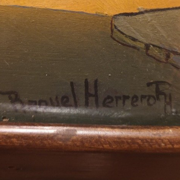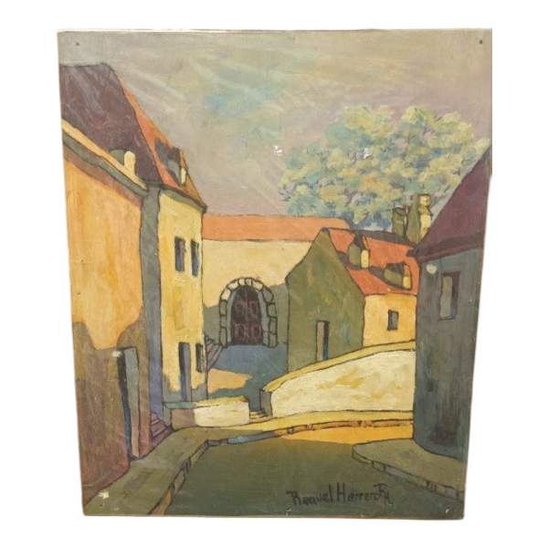 Herrera Raquel, óleo sobre terciario titulado Rincon de mi pueblo 22cm x 27cm