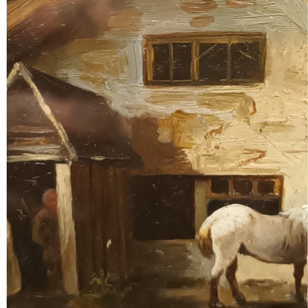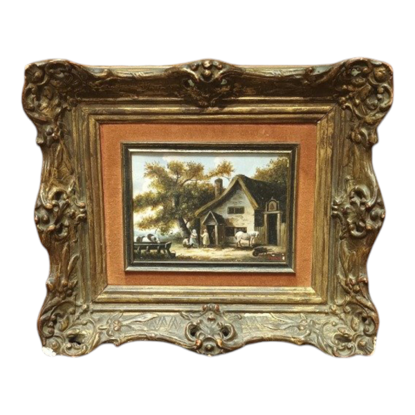 Montaner Miguel, óleo sobre Cartón, escena rural 15cm x 11cm