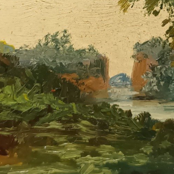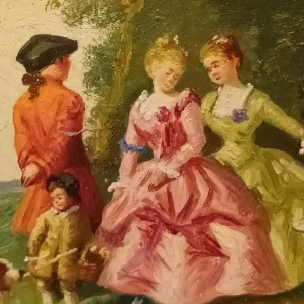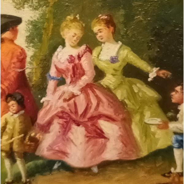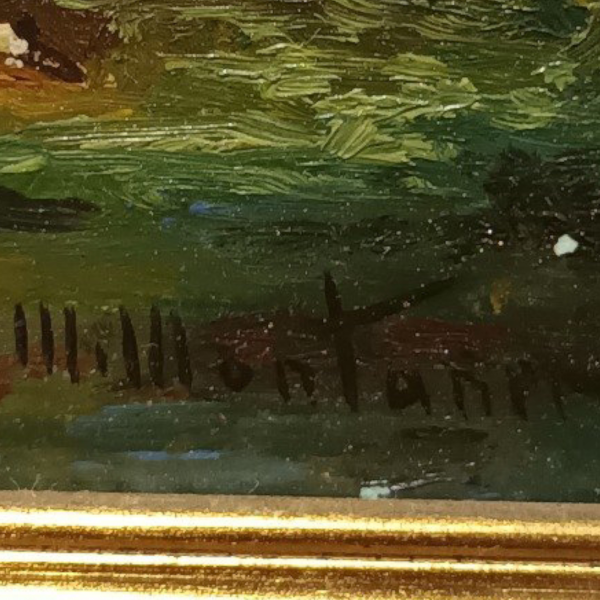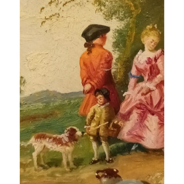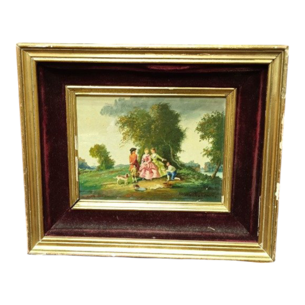Montaner Miguel, óleo sobre tela escena romántica 15cm x 12cm