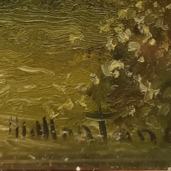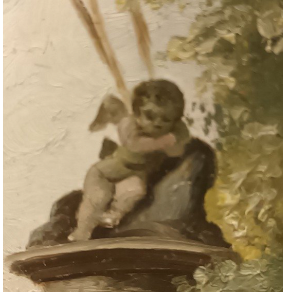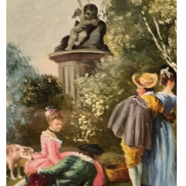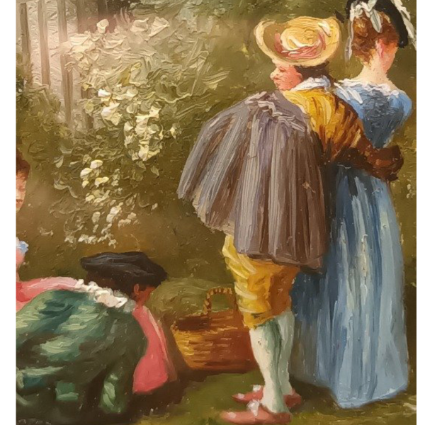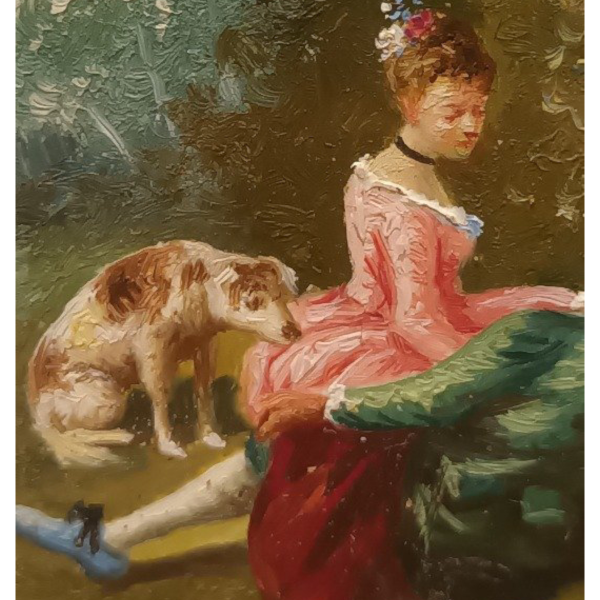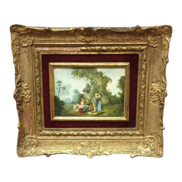 Montaner Miguel, óleo sobre tela escena romántica 15cm x 12cm