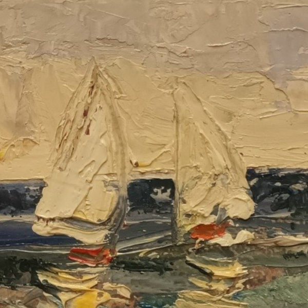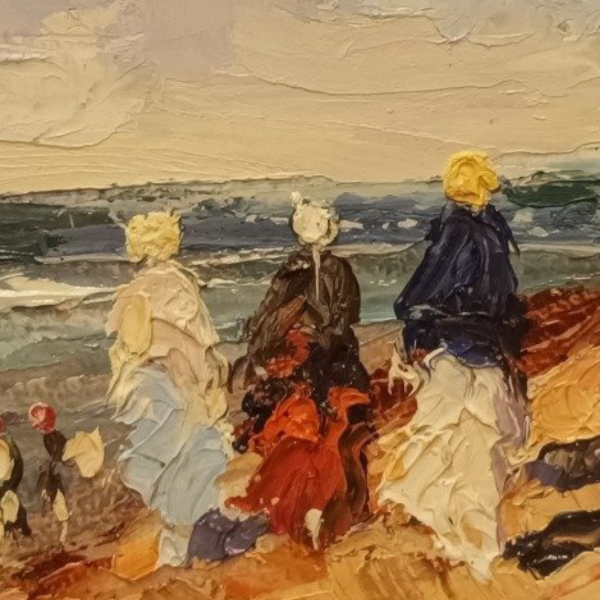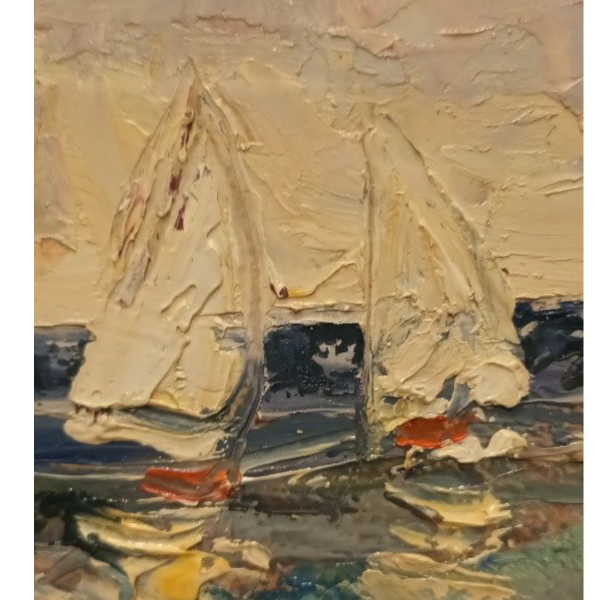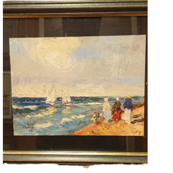 Montoya Ortiz Heriberto, óleo sobre Cartón, paisaje de playa 24cm x 18cm