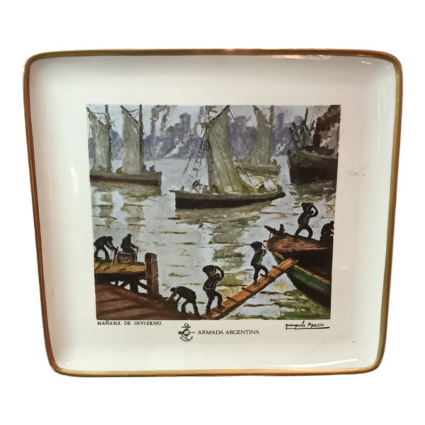 Quinquela Martin, Mañana de invierno 25cm x 23cm bandeja porcelana